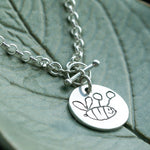 To keep your jewellery looking its best, use the polishing cloth provided with your piece to remove any light tarnish. For more stubborn tarnish, gently polish with a silver polish. Chains can be cleaned using a silver dip, which is available at most hardware stores—this process is quick and will leave them looking sparkly and new. However, avoid dipping any engraved or printed pieces, as this could remove the antiquing from the print or engraving. Always store your jewellery in a cool, dry place when not in use to maintain its shine and quality.