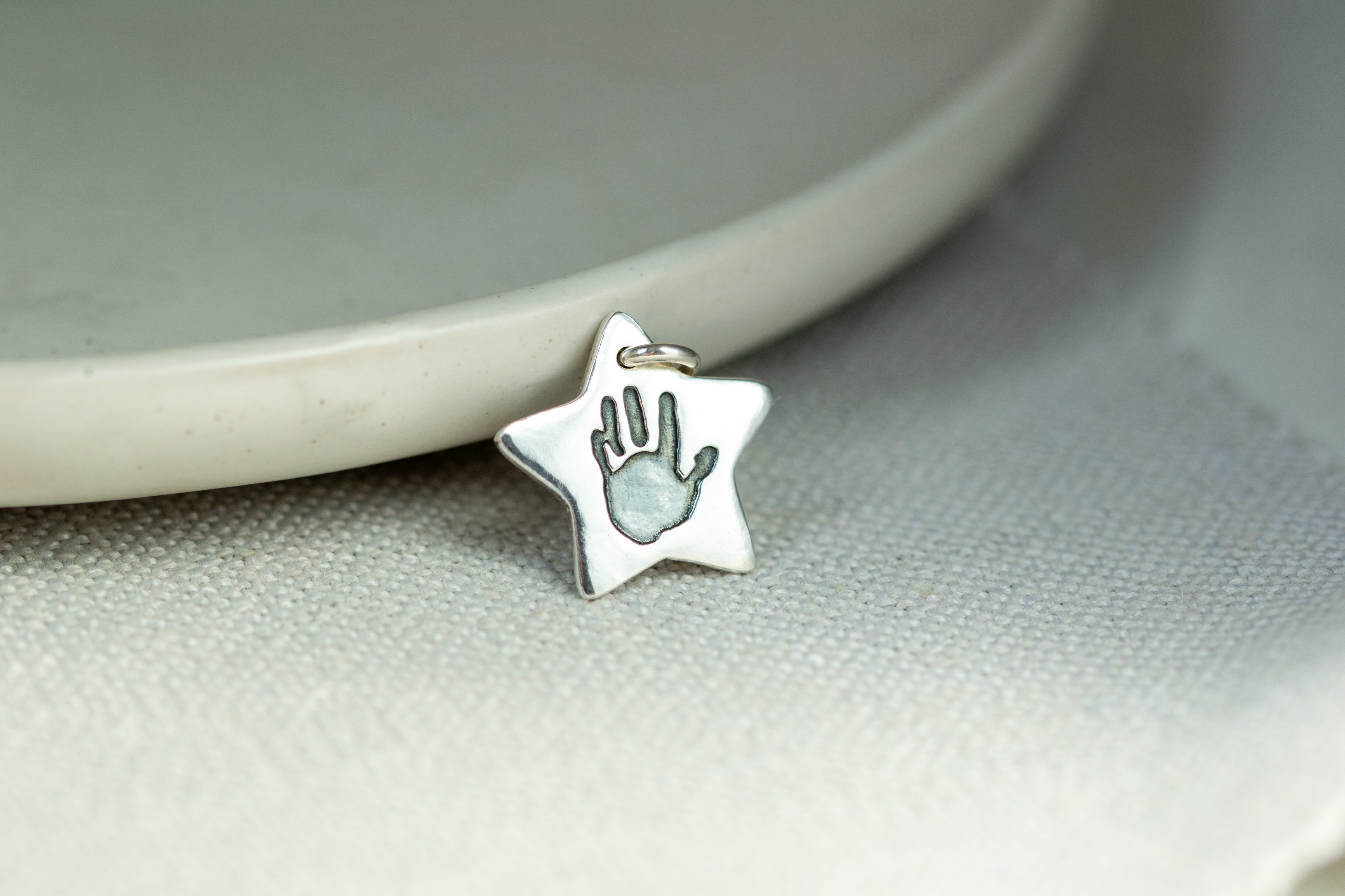The perfect addition to your charm collection! This popular sterling silver charm captures a hand or footprint on one side, with a name and age engraved on the reverse. As a standout piece of hand and footprint jewellery, each charm is handmade and comes with a silver jump ring, making it easy to attach to an existing bracelet or necklace. Upload a clear picture of an existing print or clay cast with your order, or use one of our inkless hand & footprint kits to create a new print. Choose from various charm shapes, and your finished item will arrive beautifully packaged, complete with a polishing cloth and care advice.