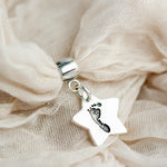 Looking for a personalised addition to your Pandora bracelet? Our hand or footprint sterling silver charm is perfect for you! Each charm is handmade and features a name and age engraved on the rear, making it a unique piece of hand and footprint jewellery. Simply upload a clear picture of an existing print or clay cast with your order, or use one of our inkless hand & footprint kits to create an original print. Choose from a variety of charm shapes, and your finished item will be delivered beautifully packaged, complete with a polishing cloth and care advice.