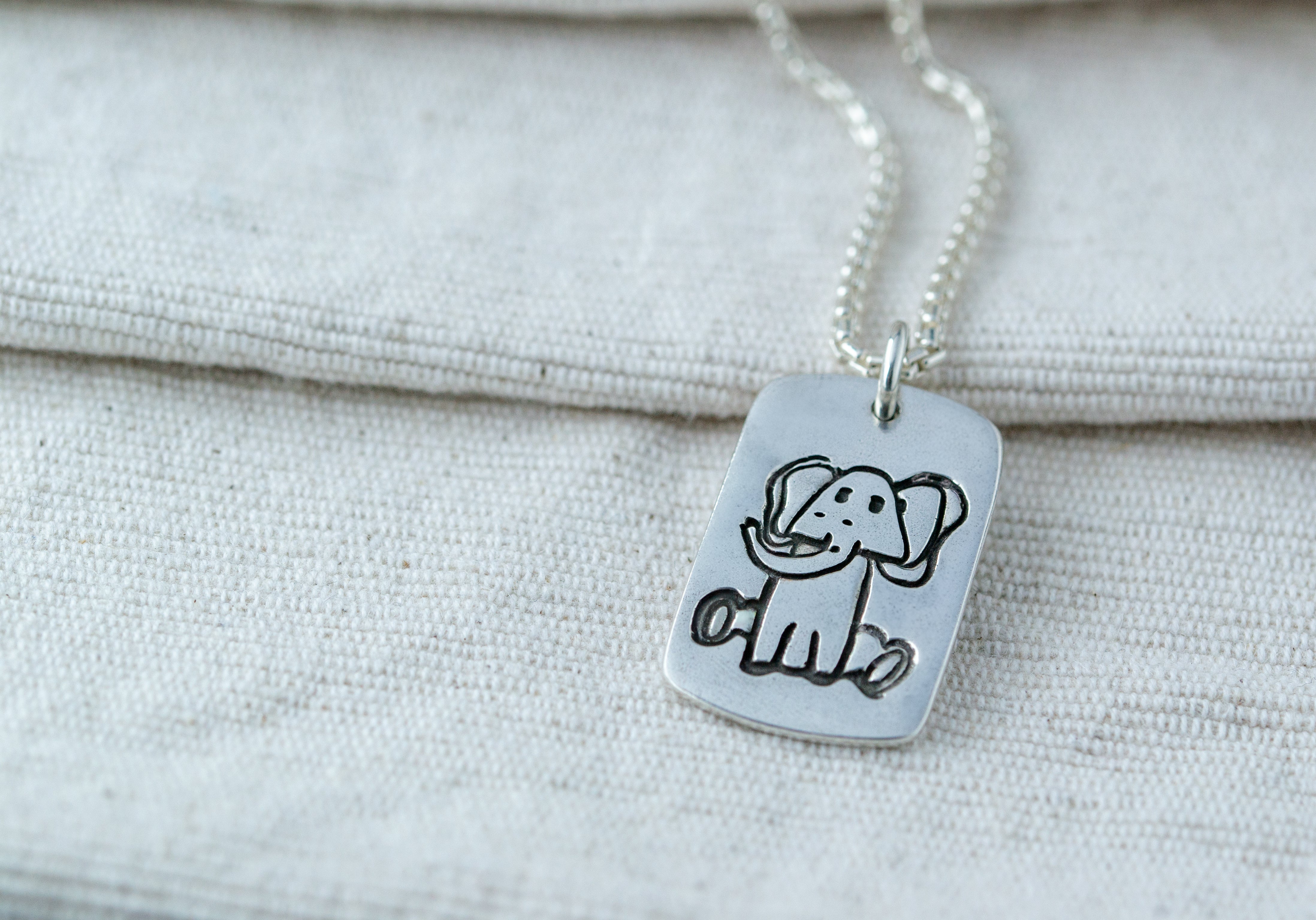 If you prefer a classic necklace with a bit more substance, this might be the perfect choice for you. It's an ideal option "for him" as well as "for her." Transform your favourite drawing into a beautiful piece of personalised jewellery! Simply take a photo of the artwork and upload it during the ordering process. We'll expertly shrink the image and stamp it onto a sterling silver pendant in the shape of your choice. Want to make it even more special? You can have the artist's name and age engraved on the piece—it's included in the price! Select from three size options for your silver link chain, and for the perfect finishing touch, add a birthstone to create a truly unique drawing jewellery keepsake.