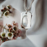 For those who prefer a classic necklace with a bit more substance, our fingerprint jewellery is the perfect choice—suitable "for him" or "for her." Capture your love one's actual fingerprint in sterling silver, or use an adult's print for a meaningful keepsake. You can visit a local jeweller for the impression or use our moulding kit at home. Select from various pendant shapes, with a hand-engraved name and age included. Complete the look with a silver link chain in one of three sizes, and optionally add a birthstone for a unique touch.