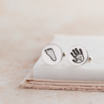 Our cufflinks are a timeless way to showcase little fingers and tiny toes, with a name engraved on the back—perfect for two children. These discreet and luxurious hand and footprint cufflinks make an ideal gift for Father's Day, Christmas, birthdays, or any special occasion. Upload a clear photo of an existing print or clay cast with your order, or use one of our inkless hand and footprint kits to capture an original print. You can’t go wrong with these elegant keepsakes.