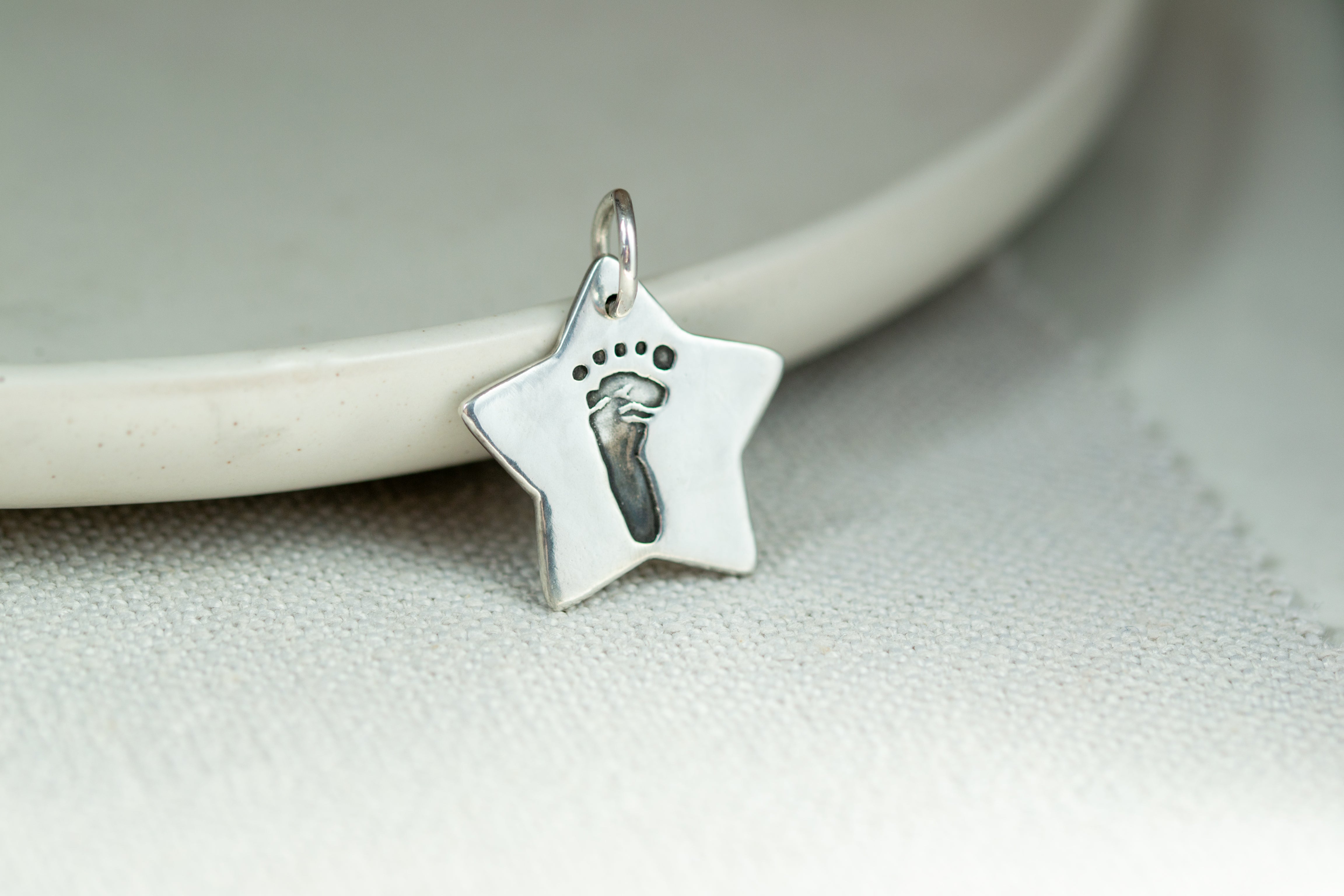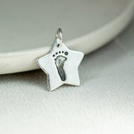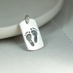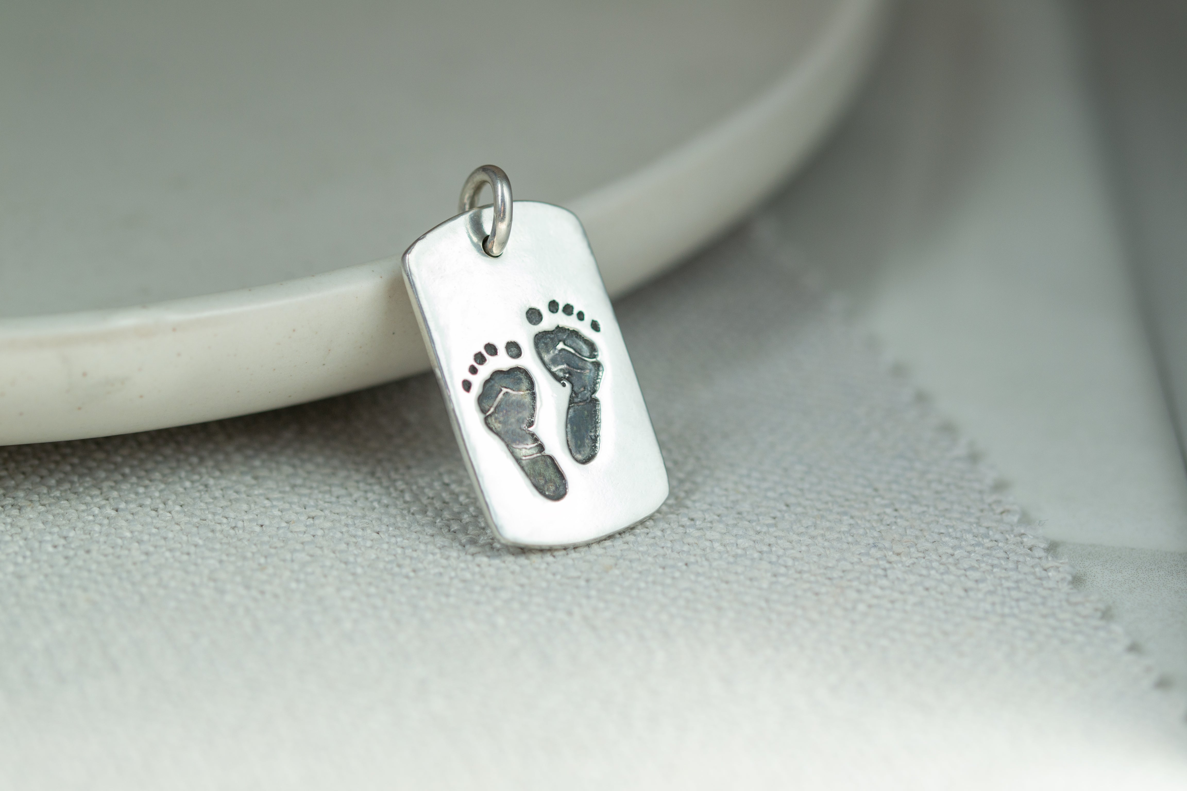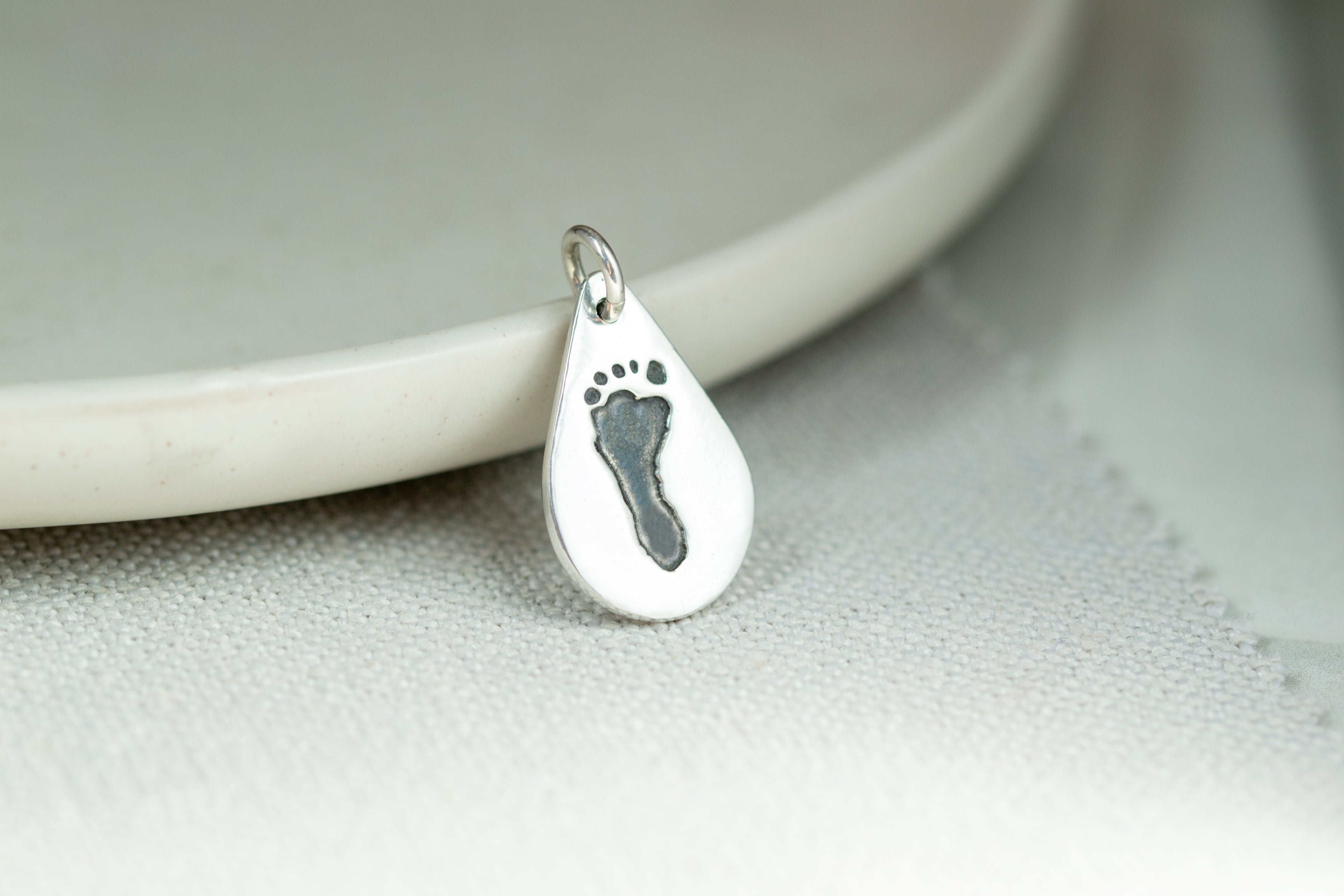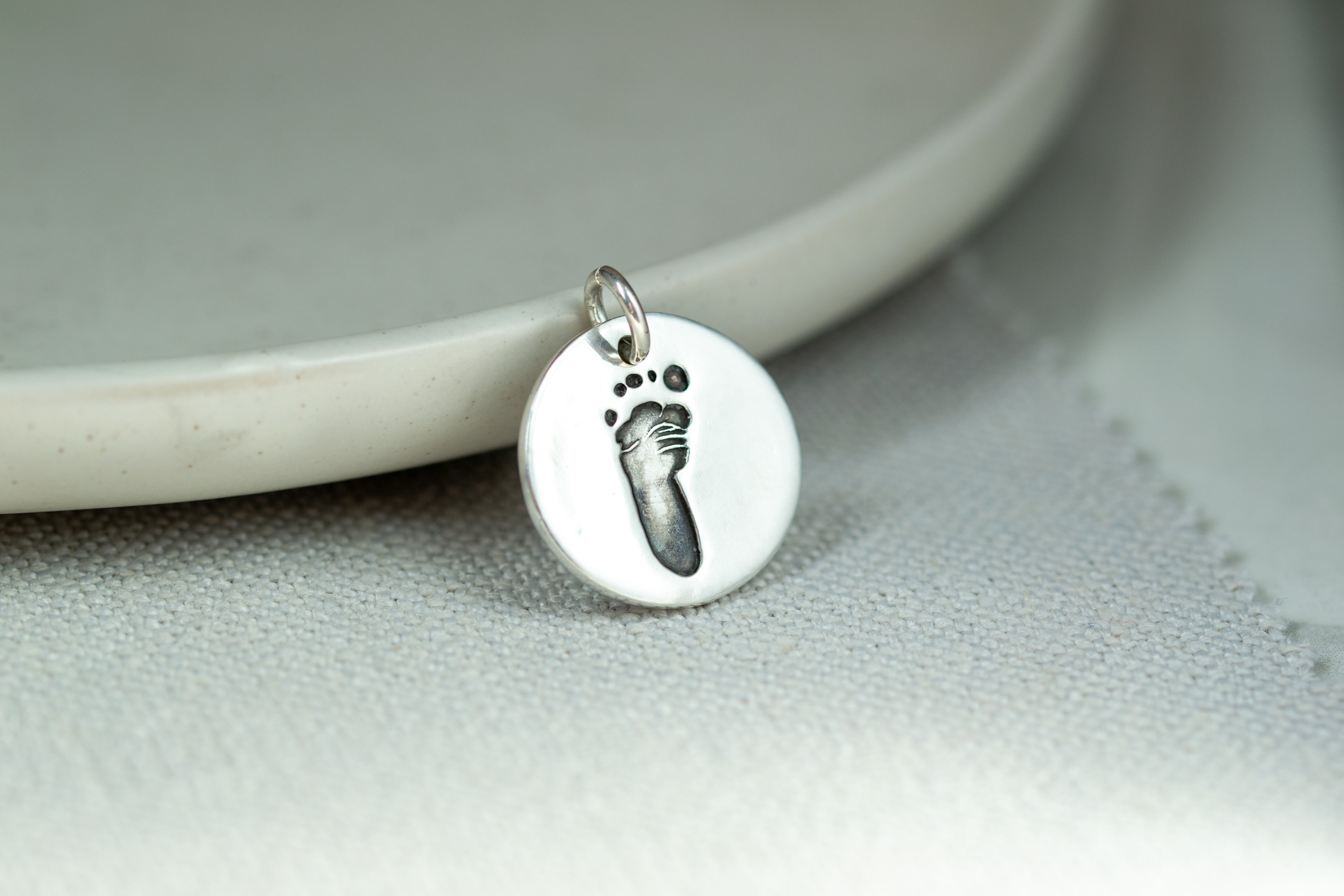 Capture the moment from the day your baby is born with our popular sterling silver pendant, featuring a hand or footprint along with a hand-engraved name and age on the back. This pendant is a cherished keepsake and a beautiful piece of hand and footprint jewellery. Each pendant comes with a silver jump ring, ready to attach to an existing necklace or one from our collection. Upload a clear picture of an existing print or clay cast with your order, or use one of our inkless hand & footprint kits to create an original print. Your finished item will arrive beautifully packaged, complete with a polishing cloth and care advice.