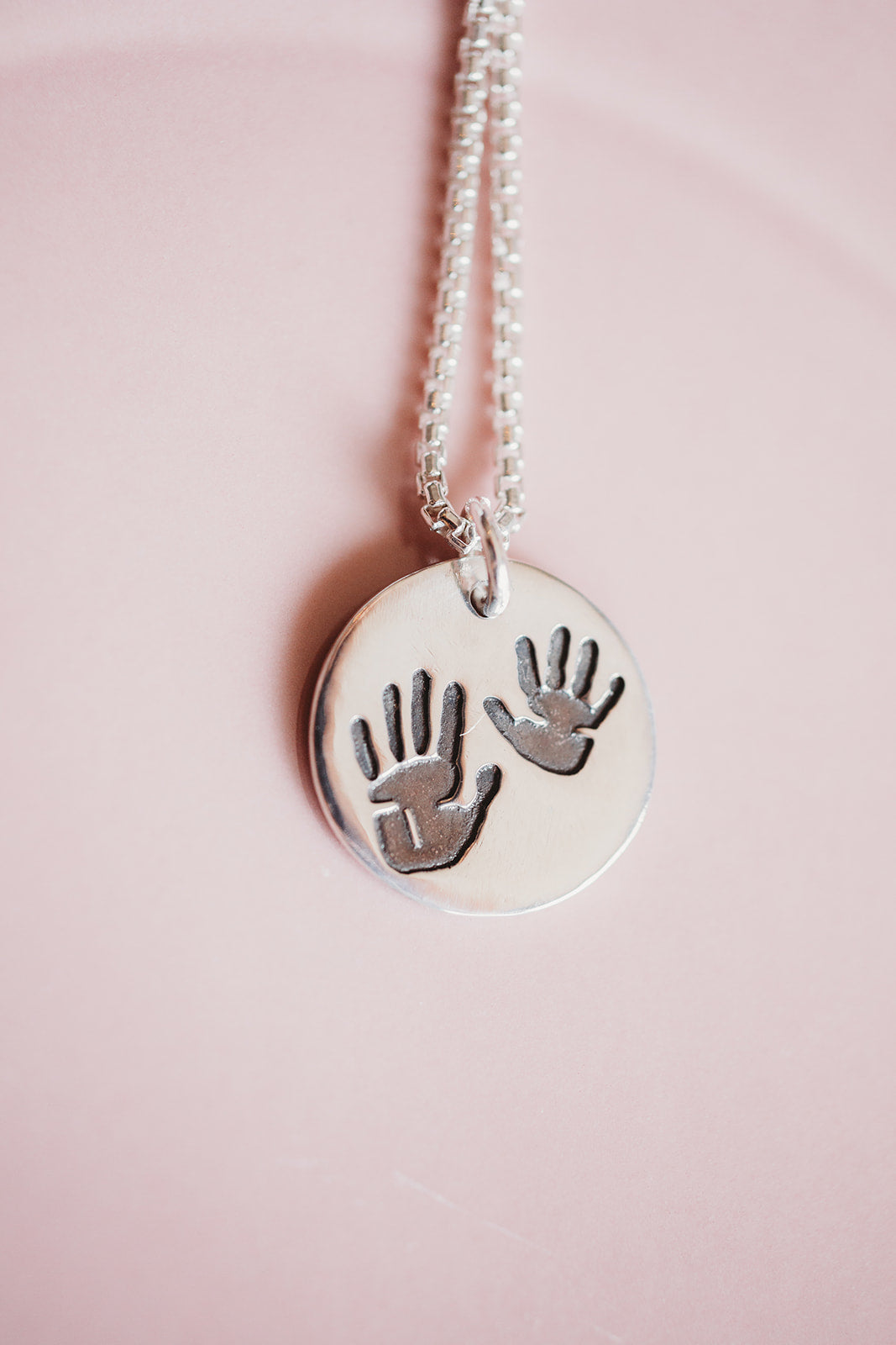 If you prefer a classic necklace with a little more substance, this might be the perfect choice—suitable "for him" as well as "for her." Capture the moment from the day your baby is born with our sterling silver pendant, featuring a hand or footprint along with a hand-engraved name and age. This pendant is a timeless piece of hand and footprint jewellery. Upload a clear picture of an existing print or clay cast with your order, or use one of our inkless hand & footprint kits to create an original print. Choose from a variety of pendant shapes, then select from three size options for your silver link chain. You can also include a birthstone for a unique, personalised keepsake.