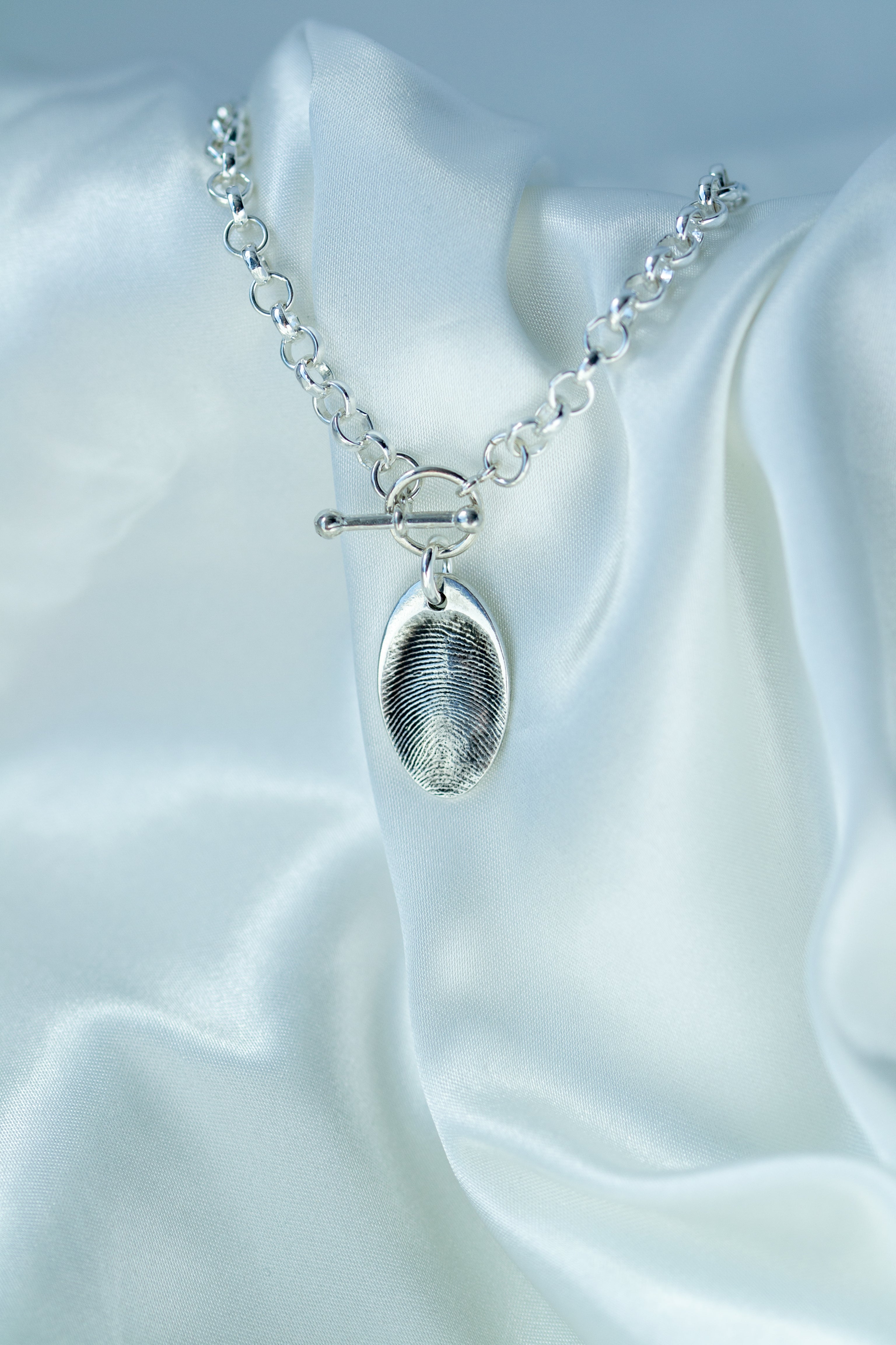 Yes, all our jewellery pieces, including personalised items like fingerprint jewellery, are crafted from high-quality sterling silver. This ensures a beautiful, durable finish that maintains its shine and quality over time.