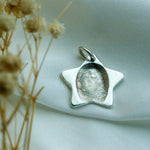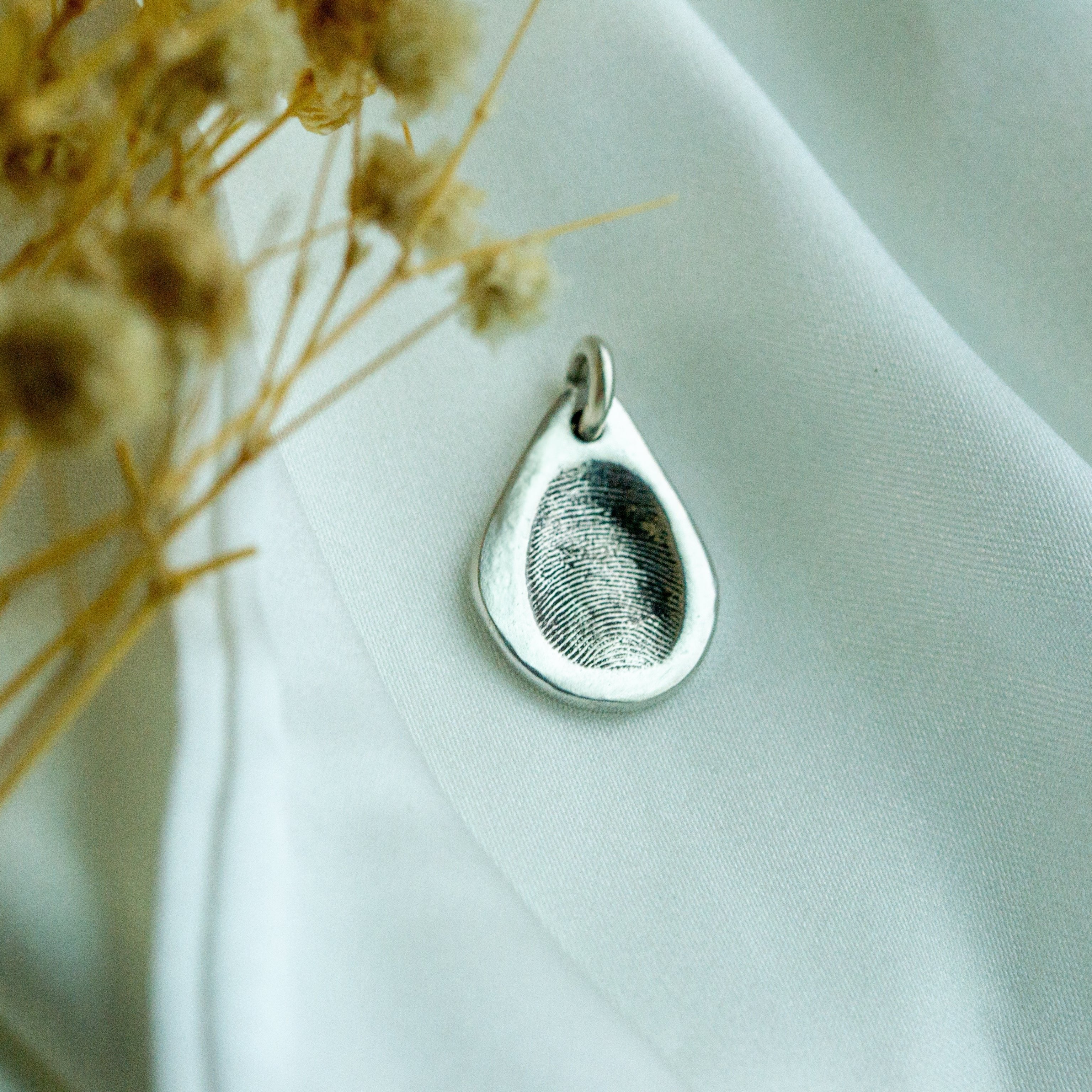 A timeless piece that serves as a heartfelt tribute. Capture a loved one’s actual fingerprint in sterling silver with our unique fingerprint jewellery. Have the impression made by a local jeweller or use our moulding kit to create the perfect charm. Choose from various shapes, each featuring a sterling silver jump ring for easy attachment to any bracelet (or select from our range). To complete the piece, we’ll engrave a name and age on the back—all included in the price.