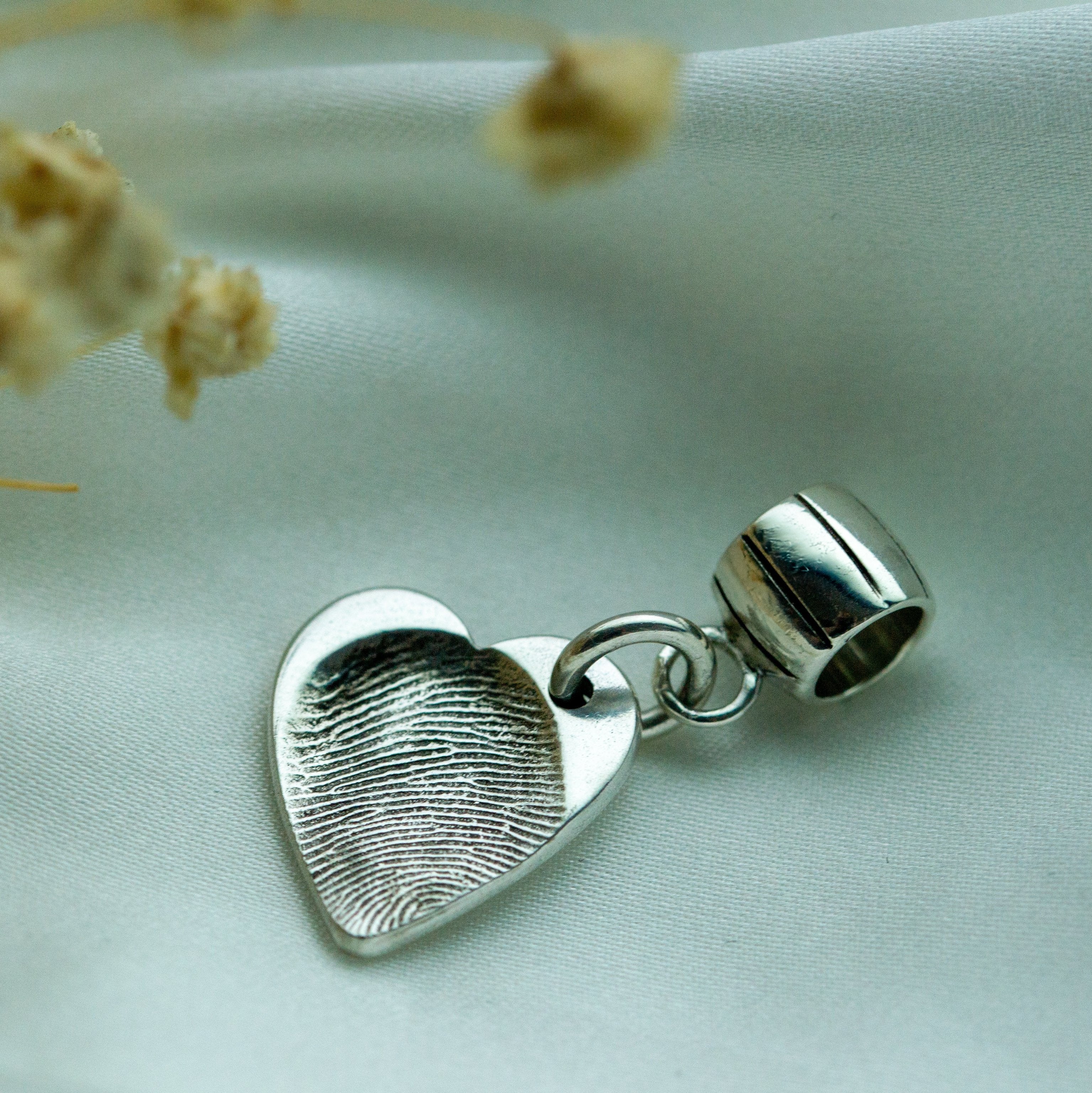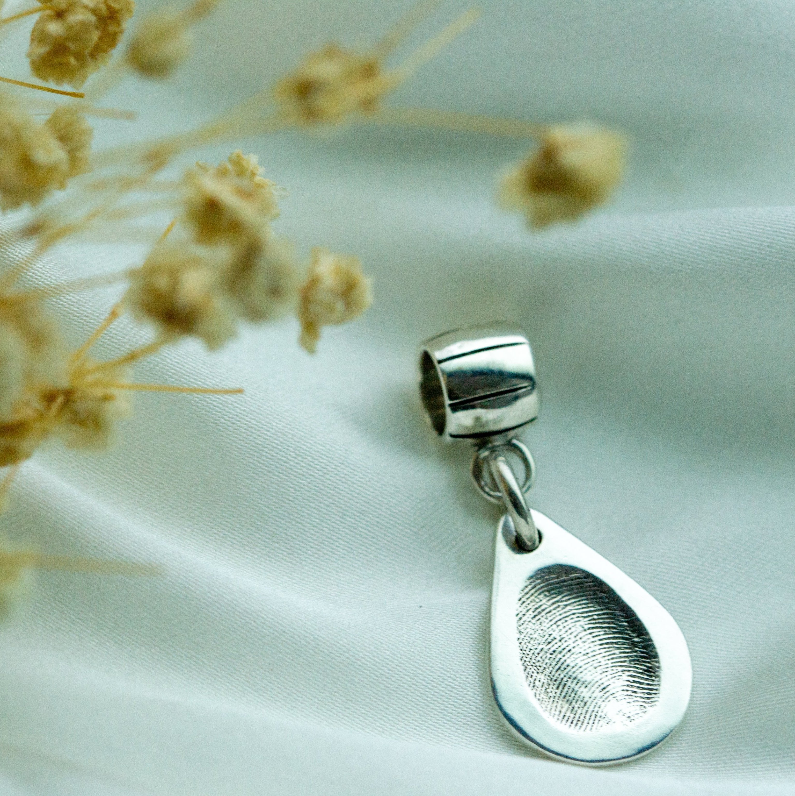 Seeking a truly unique piece to honor a loved one on your Pandora bracelet? Our memorial fingerprint jewellery offers a personal touch like no other! Capture your loved one’s actual fingerprint forever on a sterling silver charm, designed for compatibility with Pandora bracelets. You can either visit a local jeweller to have the print made directly onto the piece or use our compound print kit to send the print back to us. Your finished memorial jewellery will arrive beautifully packaged in a Smallprint box and bag, complete with care instructions and a polishing cloth.