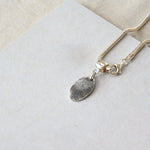 To keep your jewellery looking its best, use the polishing cloth provided with your piece to remove any light tarnish. For more stubborn tarnish, gently polish with a silver polish. Chains can be cleaned using a silver dip, which is available at most hardware stores—this process is quick and will leave them looking sparkly and new. However, avoid dipping any engraved or printed pieces, as this could remove the antiquing from the print or engraving. Always store your jewellery in a cool, dry place when not in use to maintain its shine and quality.