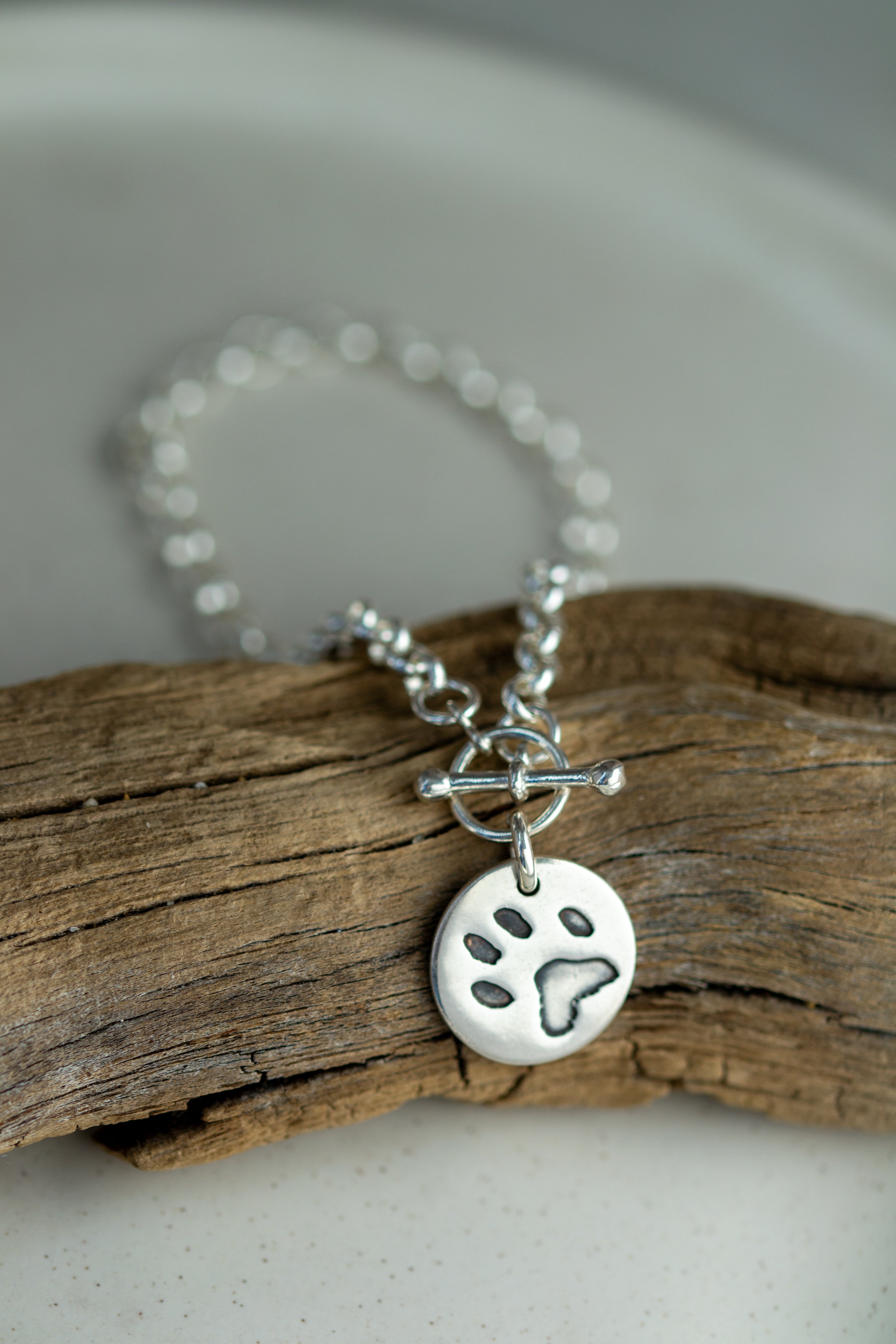 This gorgeous belcher chain bracelet is the perfect showcase for your pet's paw print jewellery, featuring exquisite paw print charms that highlight your beloved pet’s unique paw print on the front and their name engraved on the back. Our paw print charms make a truly special gift for pet lovers, allowing them to carry a piece of their precious pet with them always.