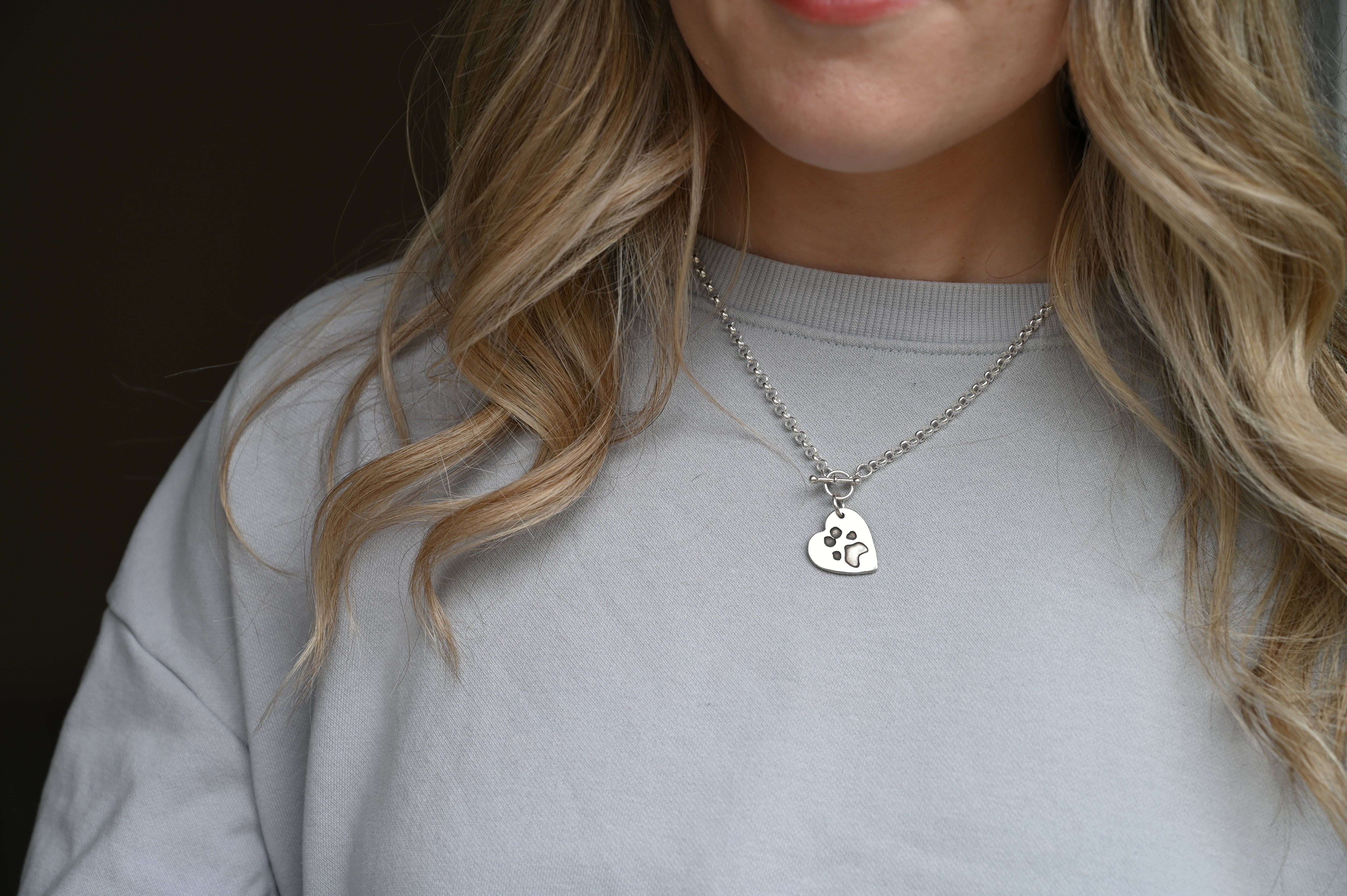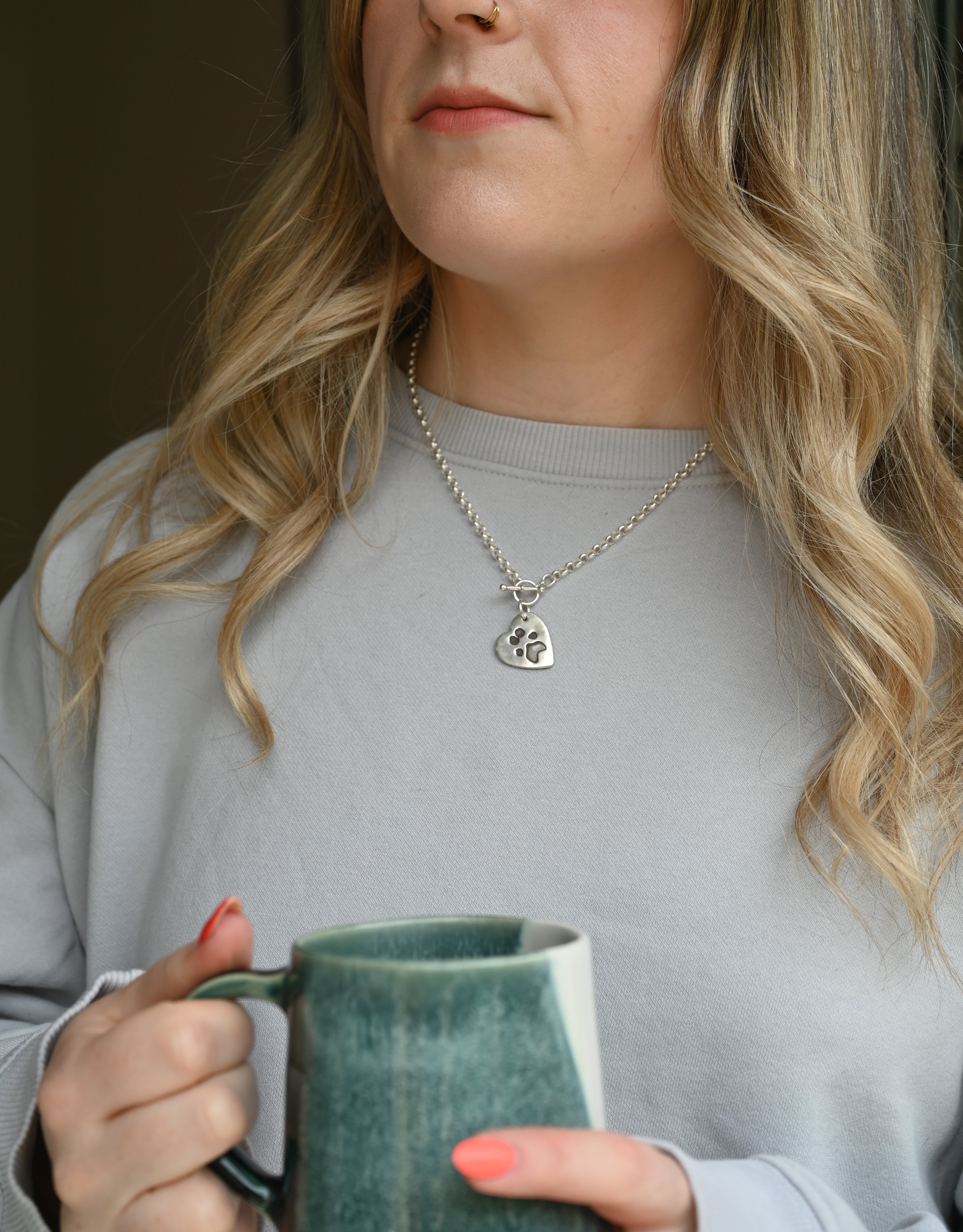 This belcher chain paw print necklace features our chunkiest chain, crafted from beautifully finished sterling silver links and secured with a gorgeous toggle clasp. This stunning piece of paw print jewellery makes a truly personal keepsake for any occasion or is perfect for celebrating the furriest member of your family!