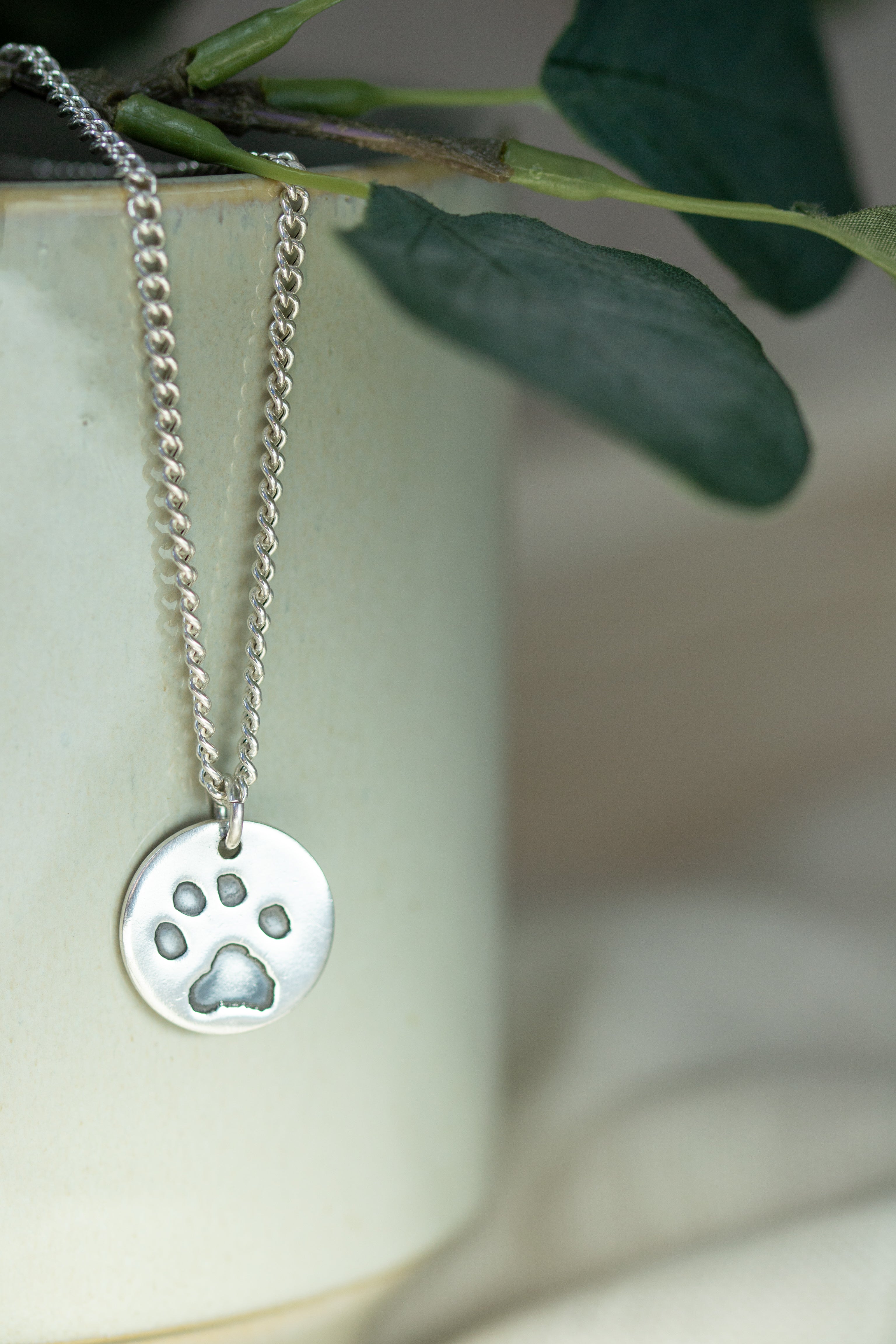 Celebrate your beloved furry family member with our exquisite paw print jewellery. This stunning piece features a longer, elegant chain, allowing it to be showcased beautifully. It's a truly personal keepsake, making it perfect for any occasion, from birthdays to anniversaries. Embrace the love and memories of your pet with this unique jewellery piece that captures their paw print forever.