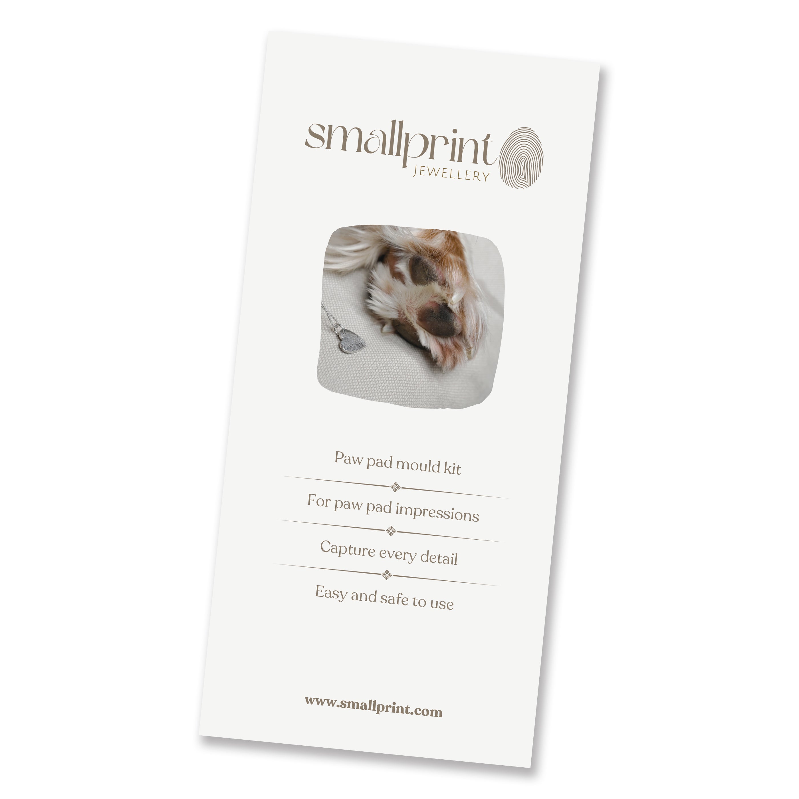 This Paw Pad Kit allows paw pad prints to be taken in a special moulding compound, capturing not only the detail of the print, but the shape and depth as well. This can be used to create handcrafted items of jewellery showcasing the whole paw pad print.