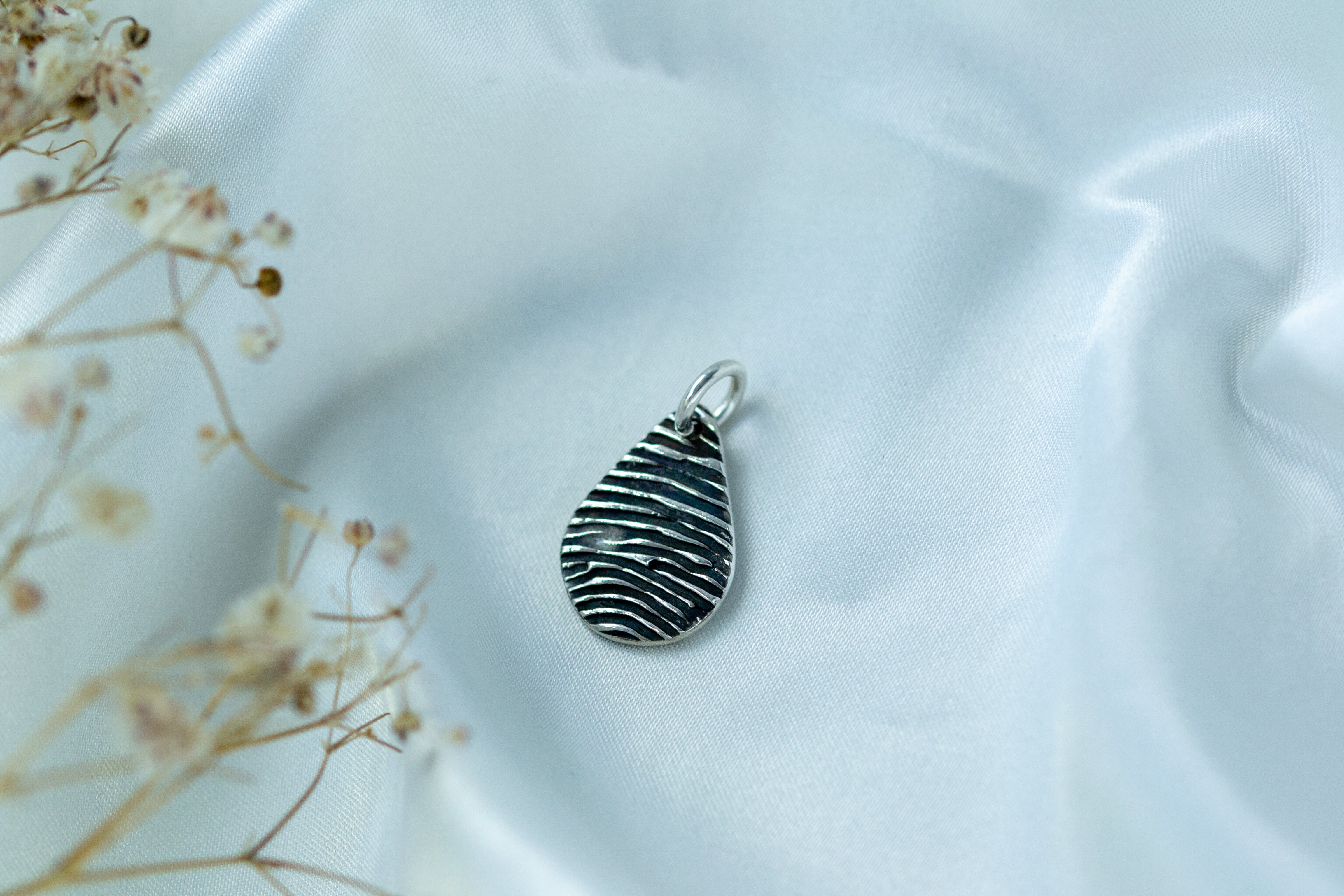 Add a meaningful piece to your collection with our memorial fingerprint jewellery charm, crafted from sterling silver and capturing the unique texture of a loved one’s fingerprint. Perfect for preserving the memory of a loved one, simply upload an existing ink print or add an ink kit to send it later. Available in a variety of shapes, each charm features a sterling silver jump ring for easy attachment to any bracelet. Personalise it further with a name and age engraving, all included in the price.