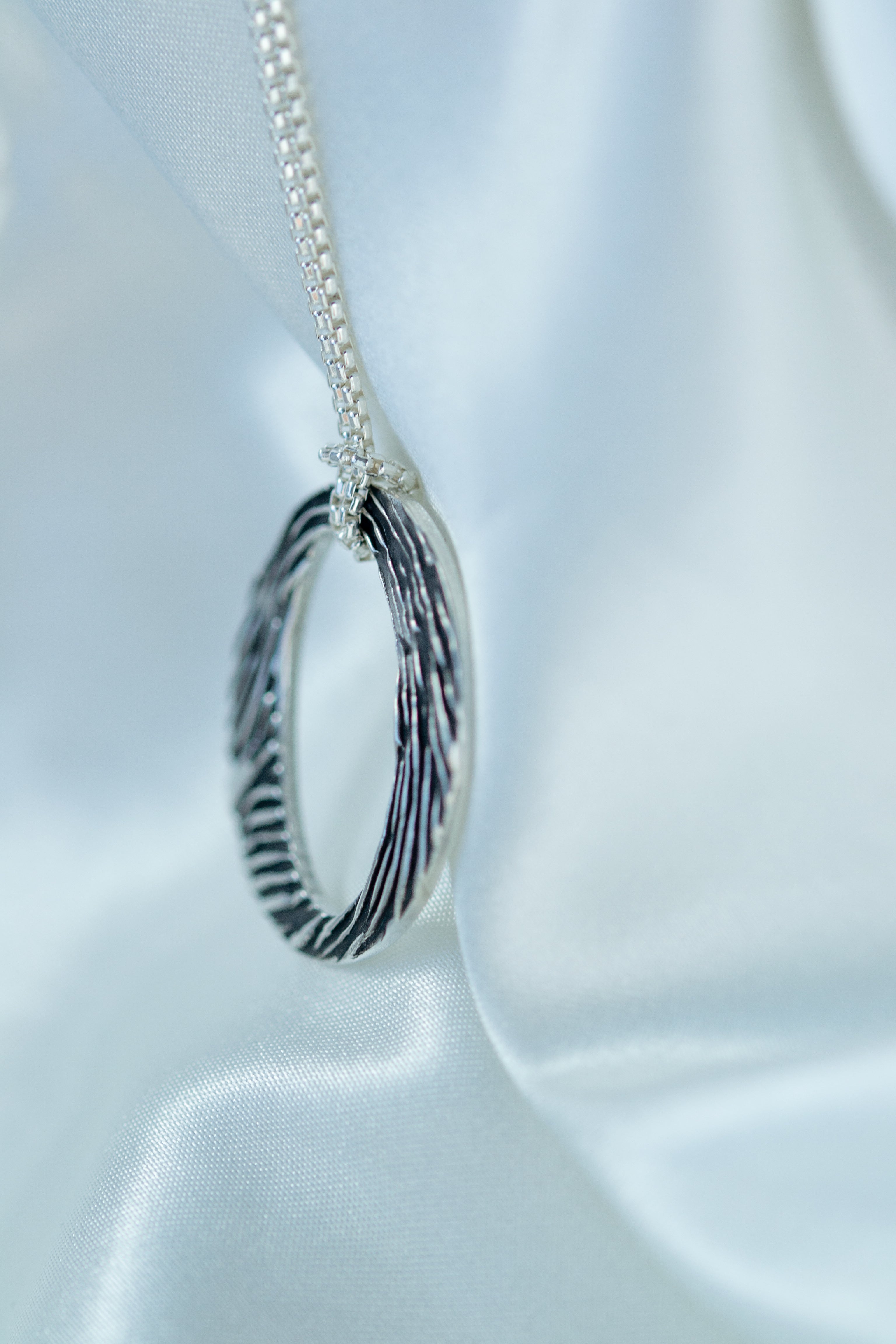 Celebrate your love with our stunning memorial fingerprint jewellery, designed to honor the memory of a loved one. This sterling silver pendant beautifully captures the texture of a fingerprint, creating a deeply personal keepsake. Simply upload an existing ink print with your order, or choose one of our ink print kits to send your print later. Complete your piece with one of our Italian-made sterling silver necklaces, available in various sizes, to create a truly unique and meaningful memorial jewellery piece.